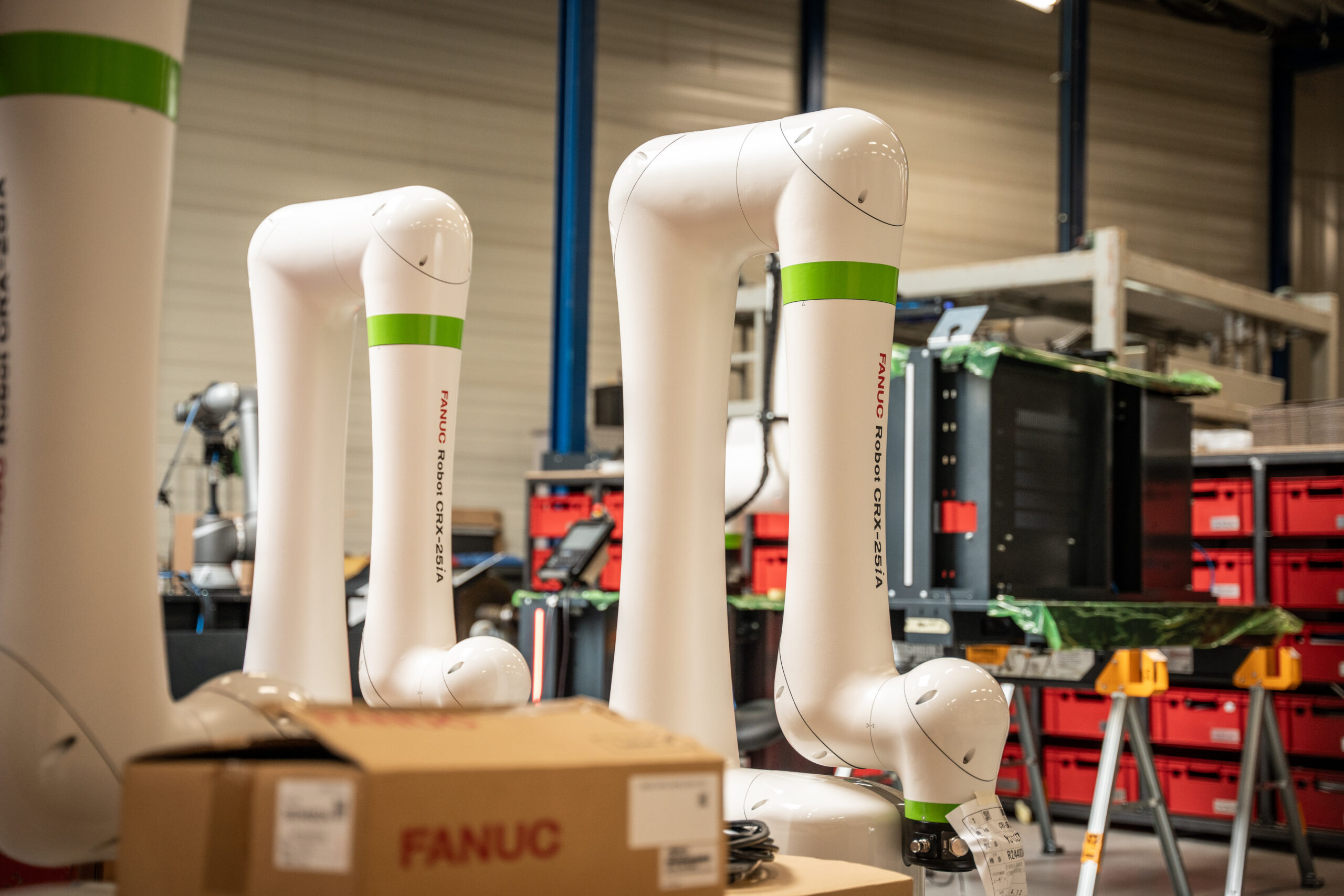Für Boermarke haben wir einen automatischen Palettierer entwickelt, der mit einem Fanuc-Roboter und einem Greifer ausgestattet ist und alle Arten von Kartons aufnehmen kann.